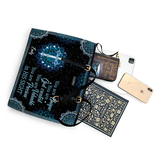 You Are Precious In His Sight - Personalized Large Leather Tote Bag AM253