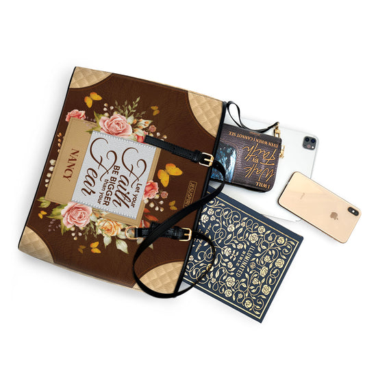 Stunning Personalized Large Leather Tote Bag - Let Your Faith Be Bigger Than Your Fear NUH334