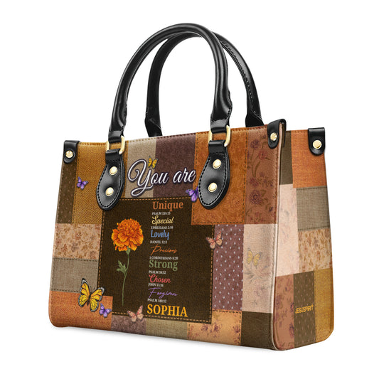 Jesuspirit | Personalized Leather Handbag With Zipper | God Says I Am Unique LHBM724