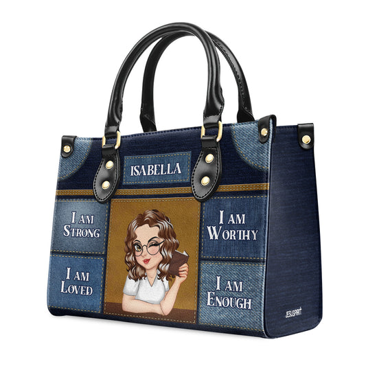 I Am Strong I Am Worthy I Am Loved I Am Enough | Personalized Leather Handbag JSLHBPTN1270TA