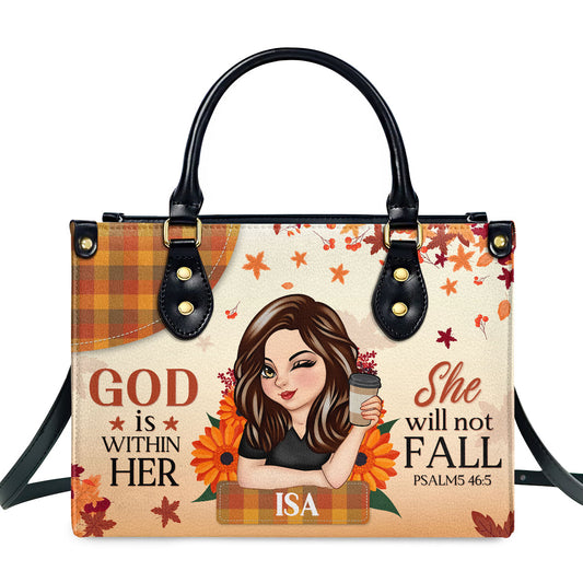 God Is Within Her She Will Not Fall | Personalized Leather Handbag JSLHBPPA1275M