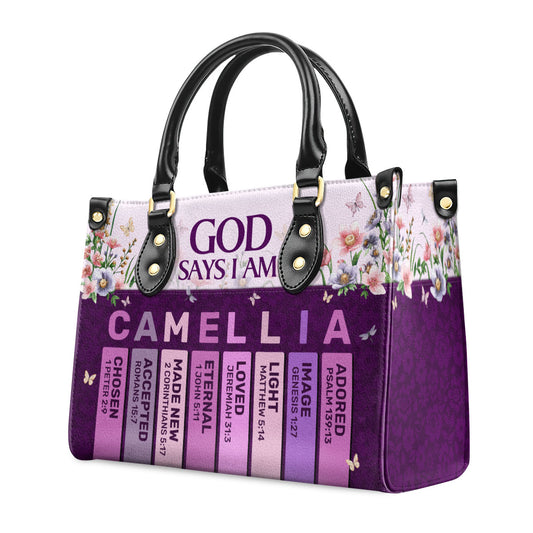Jesuspirit | Personalized Leather Handbag With Handle | God Says I Am | Scripture Gifts For Christian Women LHBH742C