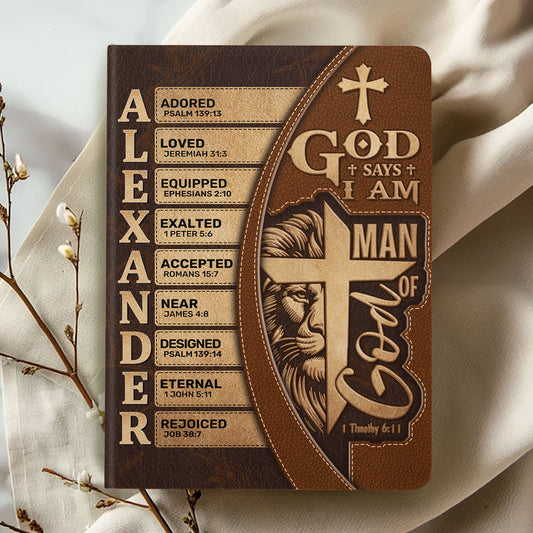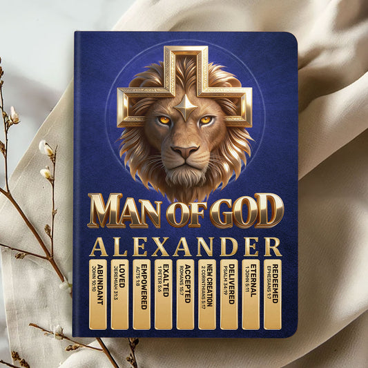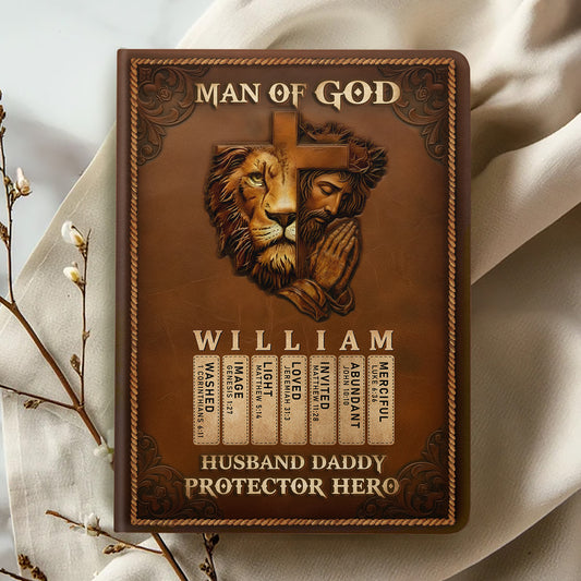 Man Of God Husband Dad Protector Hero | Personalized Leather Cover Notebook
