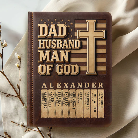 Dad Husband Man Of God | Personalized Leather Cover Notebook