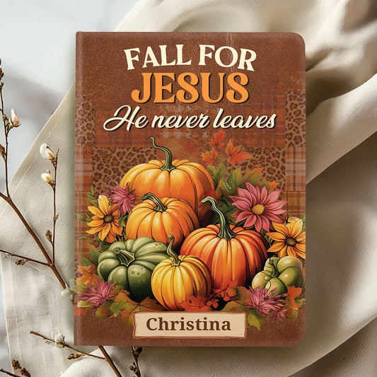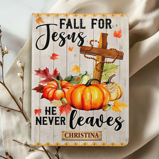 Fall For Jesus He Never Leaves | Personalized Leather Cover Notebook