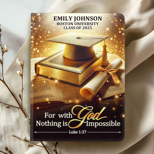 For With God, Nothing Is Impossible - Personalized Leather Cover Notebook