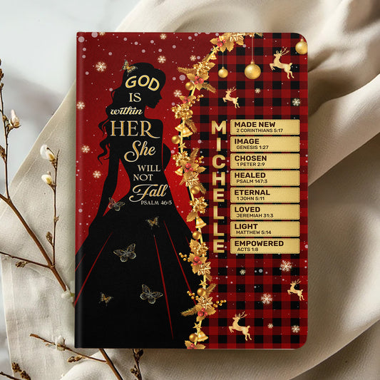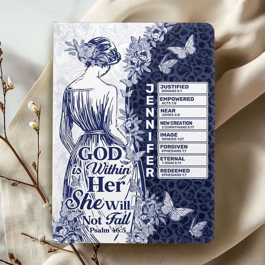 God Is Within Her She Will Not Fall | Personalized Leather Cover Notebook