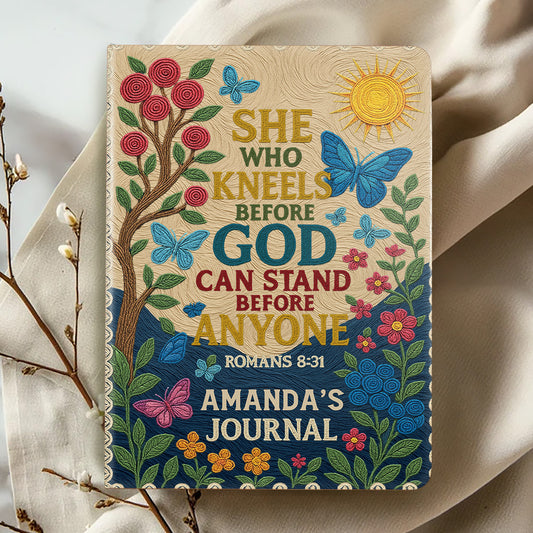 She Who Kneels Before God Can Stand Before Anyone | Personalized Leather Cover Notebook