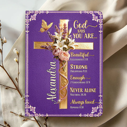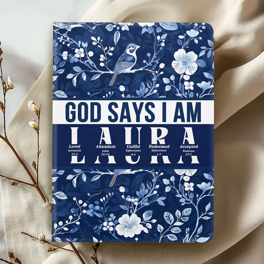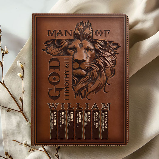 Blessed By God Loved By Jesus Led By The Spirit | Personalized Leather Cover Notebook