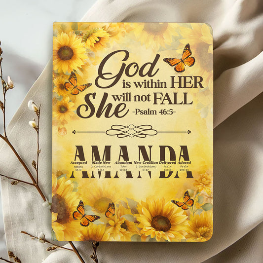 God Is Within Her She Will Not Fall | Personalized Leather Cover Notebook