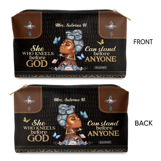 Jesuspirit | She Who Kneels Before God Can Stand Before Anyone | Worship Gift For Friends | Personalized Leather Pouch NUM484