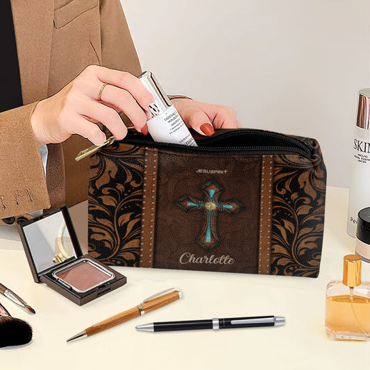 Jesuspirit | Personalized Cross Leather Pouch With Zipper | Gift For Religious Friends And Family AHN228