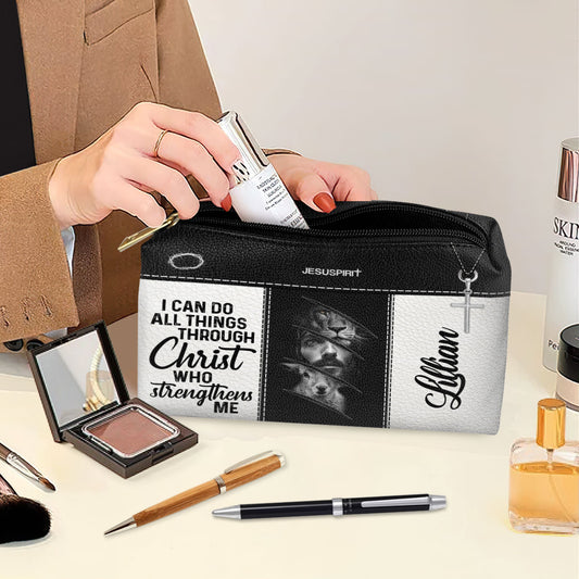 Jesuspirit Personalized Zippered Leather Pouch | Jesus & Lion | Inspirational Gift For Christian Family | Philippians 4:13 HIHN314