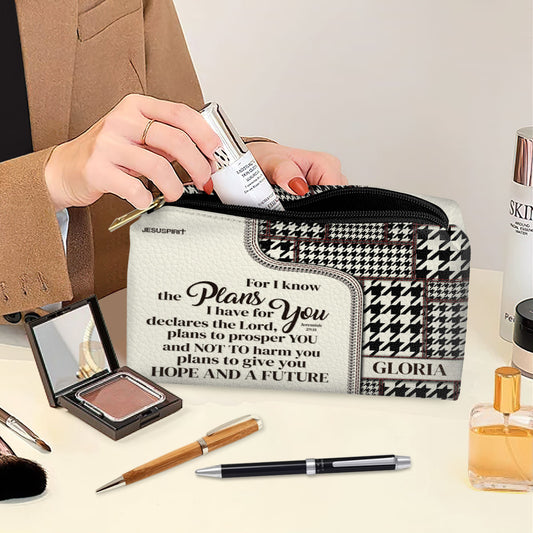Jesuspirit | Zipper Personalized Pattern Leather Pouch | For I Know The Plans I Have For You | Jeremiah 29:11 | Worship Gift For Her HIHN274A
