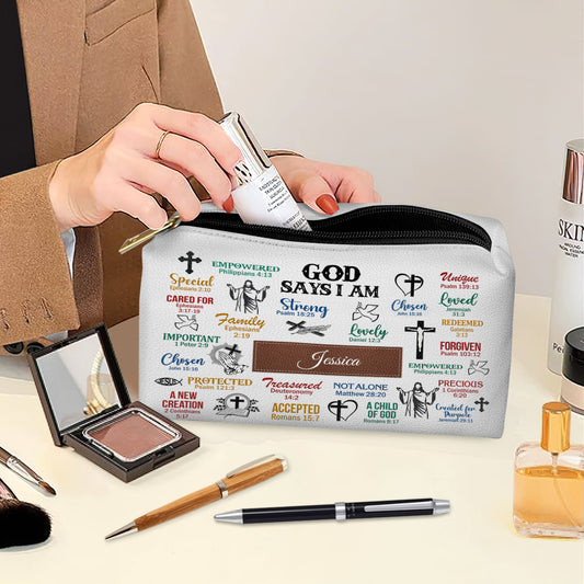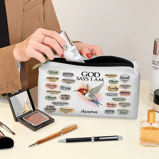 Jesuspirit | Christ Gifts For Religious Women | What God Says About You | Personalized Leather Pouch With Zipper LPH742