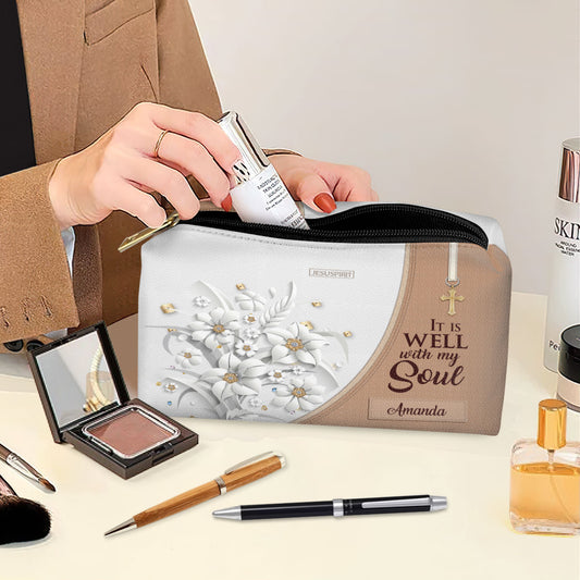 Jesuspirit | It Is Well With My Soul | Personalized Leather Pouch With Zipper | Meaningful Gift For Spiritual Members NUH336