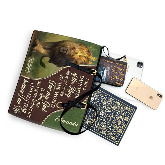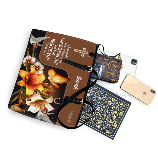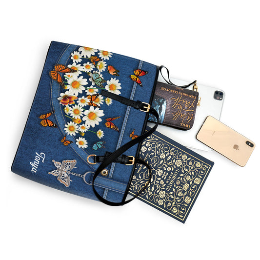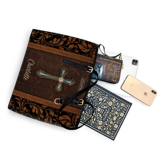Personalized Large Leather Tote Bag - For My God Is With Me And Goes Before Me HIM317