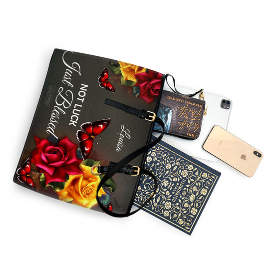 Adorable Personalized Rose Large Leather Tote Bag - Not Luck, Just Blessed H08