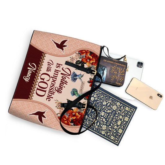Beautiful Personalized Large Leather Tote Bag - Nothing Is Impossible With God M04