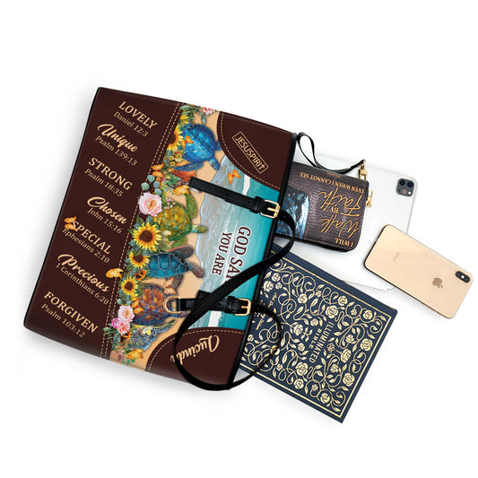 Lovely Personalized Turtle Large Leather Tote Bag - God Says You Are Special M13