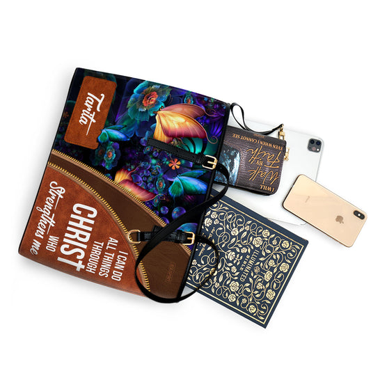 I Can Do All Things Through Christ - Beautiful Personalized Large Leather Tote Bag NUH275