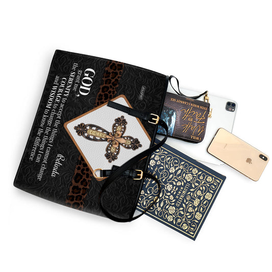 Special Personalized Large Leather Tote Bag - God, Grant Me The Serenity To Accept The Things I Cannot Change NUH424