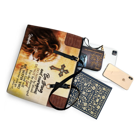 Be Strong And Courageous - Unique Personalized Large Leather Tote Bag NUHN304