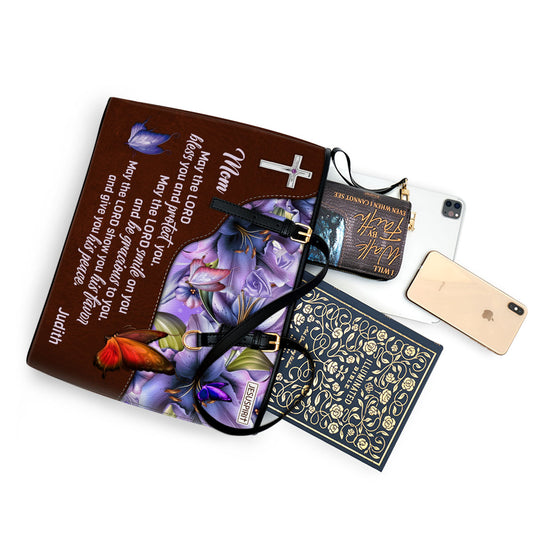 May The Lord Smile On You And Be Gracious To You - Sweet Personalized Large Leather Tote Bag For Mom NUHN363