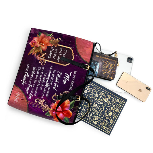 Personalized Large Leather Tote Bag - Thank You For All Your Love, Guidance, And Prayers NUM384