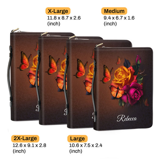 Jesuspirit Personalized Bible Cover With Handle | Rose And Cross Bible Carrying Case | Religious Gift For Women NUH469A