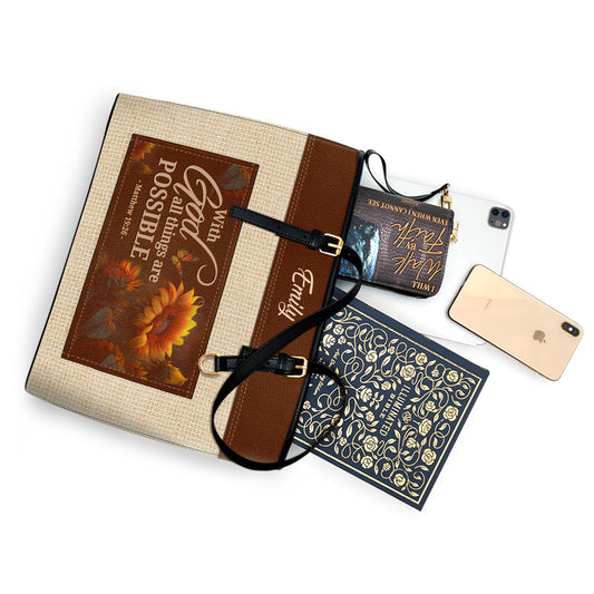 Jesuspirit | Matthew 19:26 | With God All Things Are Possible | Personalized Large Leather Tote Bag With Long Strap | Gift For Female Pastors LLTBM802