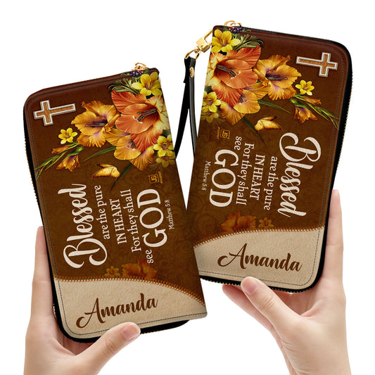 Jesuspirit | Personalized Zippered Leather Clutch Purse | Matthew 5:8 | Blessed Are The Pure In Heart | Gift For Christian Friends CPHN609