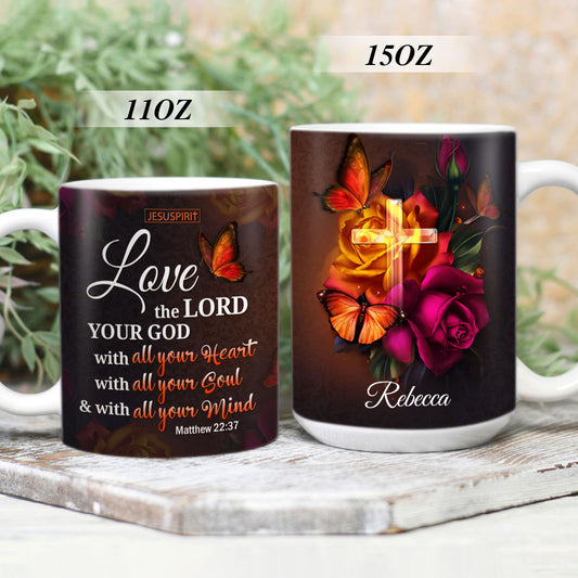 Personalized White Ceramic Mug - Love The Lord Your God With All Your Heart NUH469