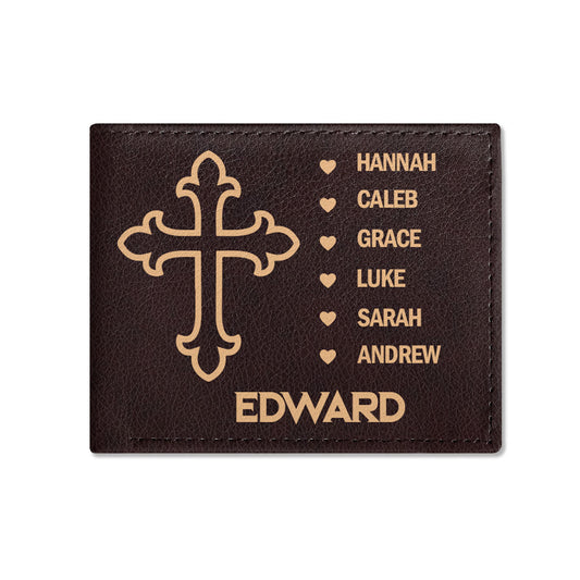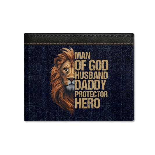 Man Of God Husband Dad Protector Hero | Personalized Leather Folded Wallet