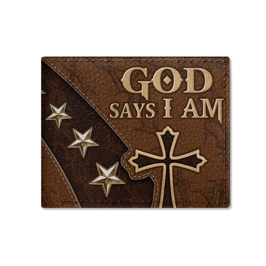 God Says I Am | Personalized Leather Folded Wallet