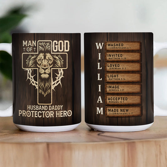 Man Of God Husband Daddy Protector Hero | Personalized Ceramic Coffee Mug