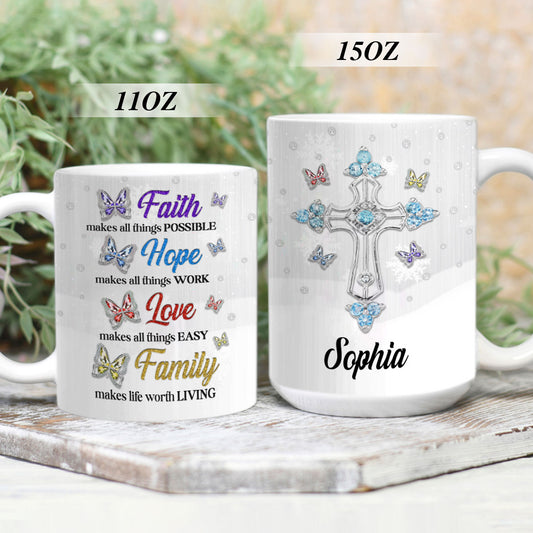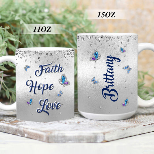 Faith, Hope, Love - Unique Personalized Christian White Ceramic Mug HA213