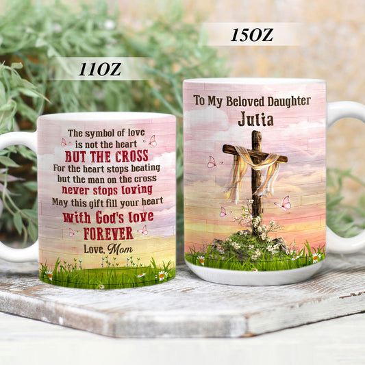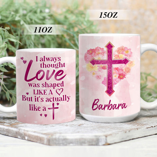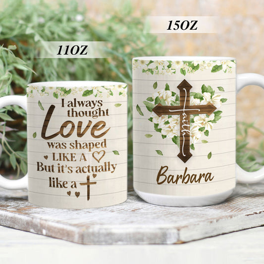 Sweet Personalized Cross White Ceramic Mug - Love Was Shaped Like A Heart But Actually Like A Cross NUHN222B