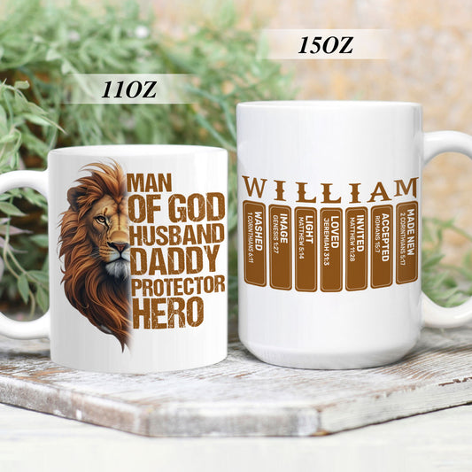 Man Of God Husband Daddy Protector Hero | Personalized Ceramic Coffee Mug