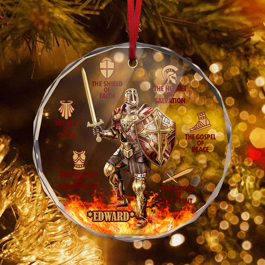 Armor Of God | Personalized 1-Side Round Glass Ornament JSURGOPPT1696M