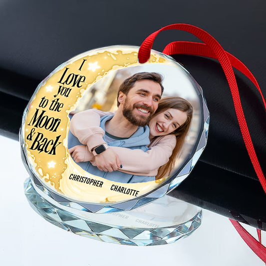 I Love You To The Moon And Back | Personalized 1-Side Round Glass Ornament JSURGOPPTN1737L
