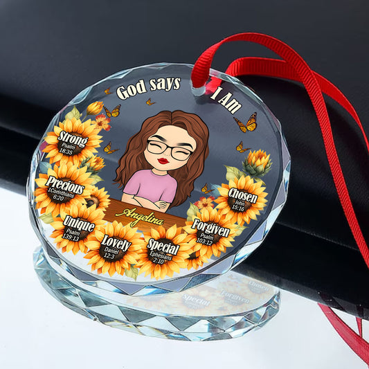 God Says I Am | Personalized 1-Side Round Glass Ornament JSURGOPPH1702L