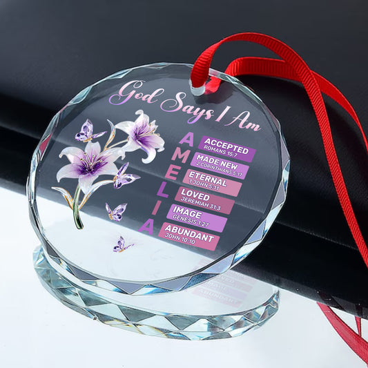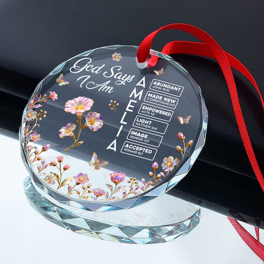 God Says I Am | Personalized Round Shaped Glass Ornament