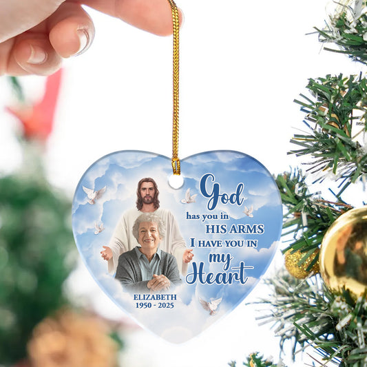 God Has You In His Arms | Personalized Heart Shaped Ceramic Ornament