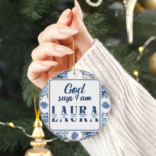 God Says I Am | Personalized Round Shaped Ceramic Ornament