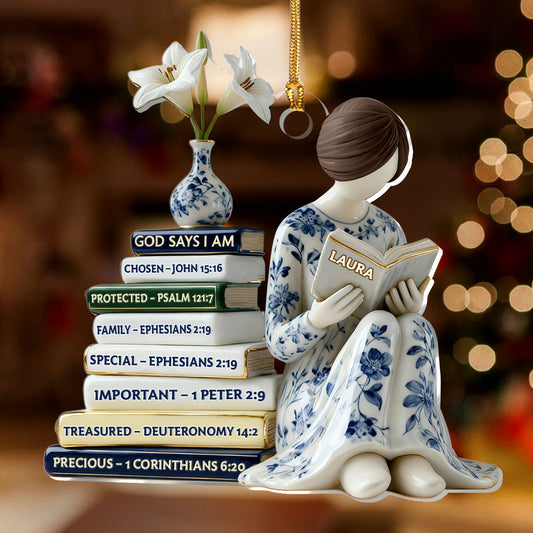 God Says I Am Reading Next To Christmas Tree | Personalized 1-Layer Acrylic Ornament
