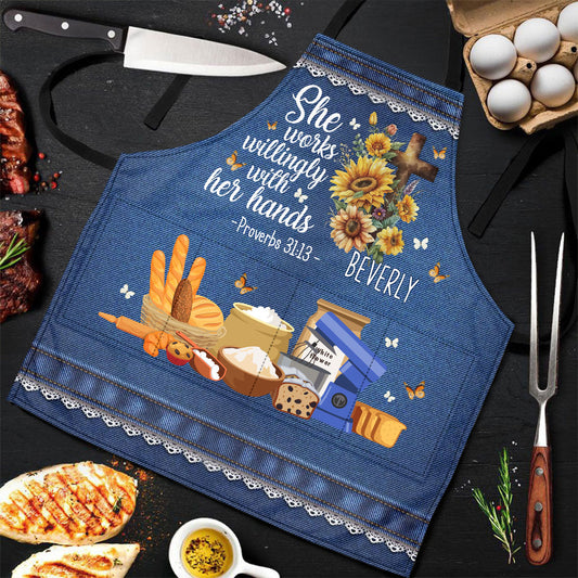 She Works Willingly With Her Hands | Personalized Apron With Packet