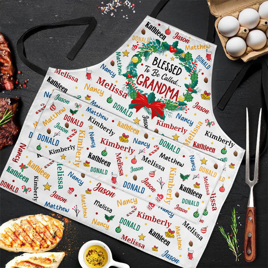 Blessed To Be Called Grandma Christmas | Personalized Apron With Packet