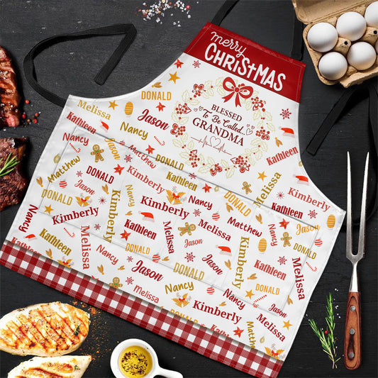 Blessed To Be Called Grandma Christmas | Personalized Apron With Packet