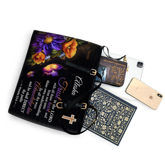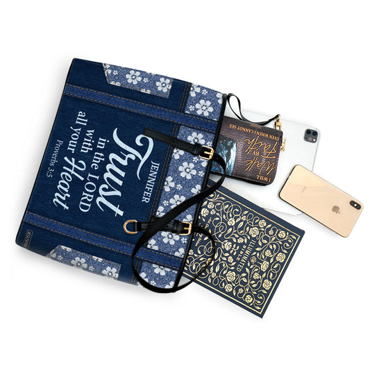 Lovely Personalized Large Leather Tote Bag - Trust In The Lord With All Your Heart HH175F